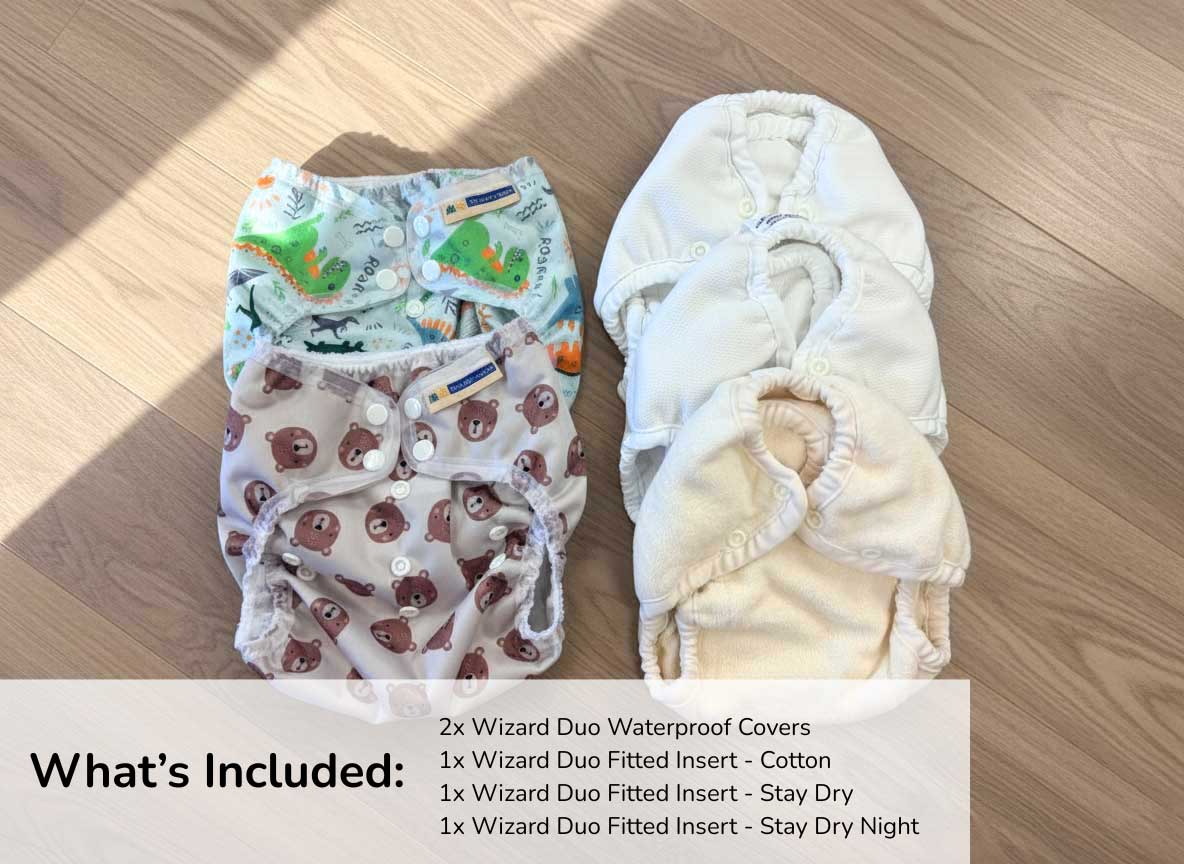 Try our Wizard Duo Trial Package to see how simple, comfortable, and effective cloth diapering can be. If you love it, your trial purchase will be fully credited toward your fill-time package.